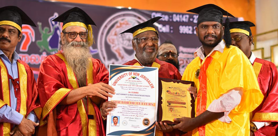 UNIVERSITY OF NEW JERUSALEMDr.Babu Krishnan has won several honours and awards. HONORARY DOCTORATE Honered by UNIVERSITY OF NEW JERUSALEM